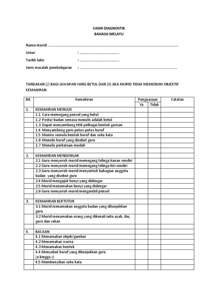 Ujian Diagnostik Bahasa Melayu Pendidikan Khas Pdf